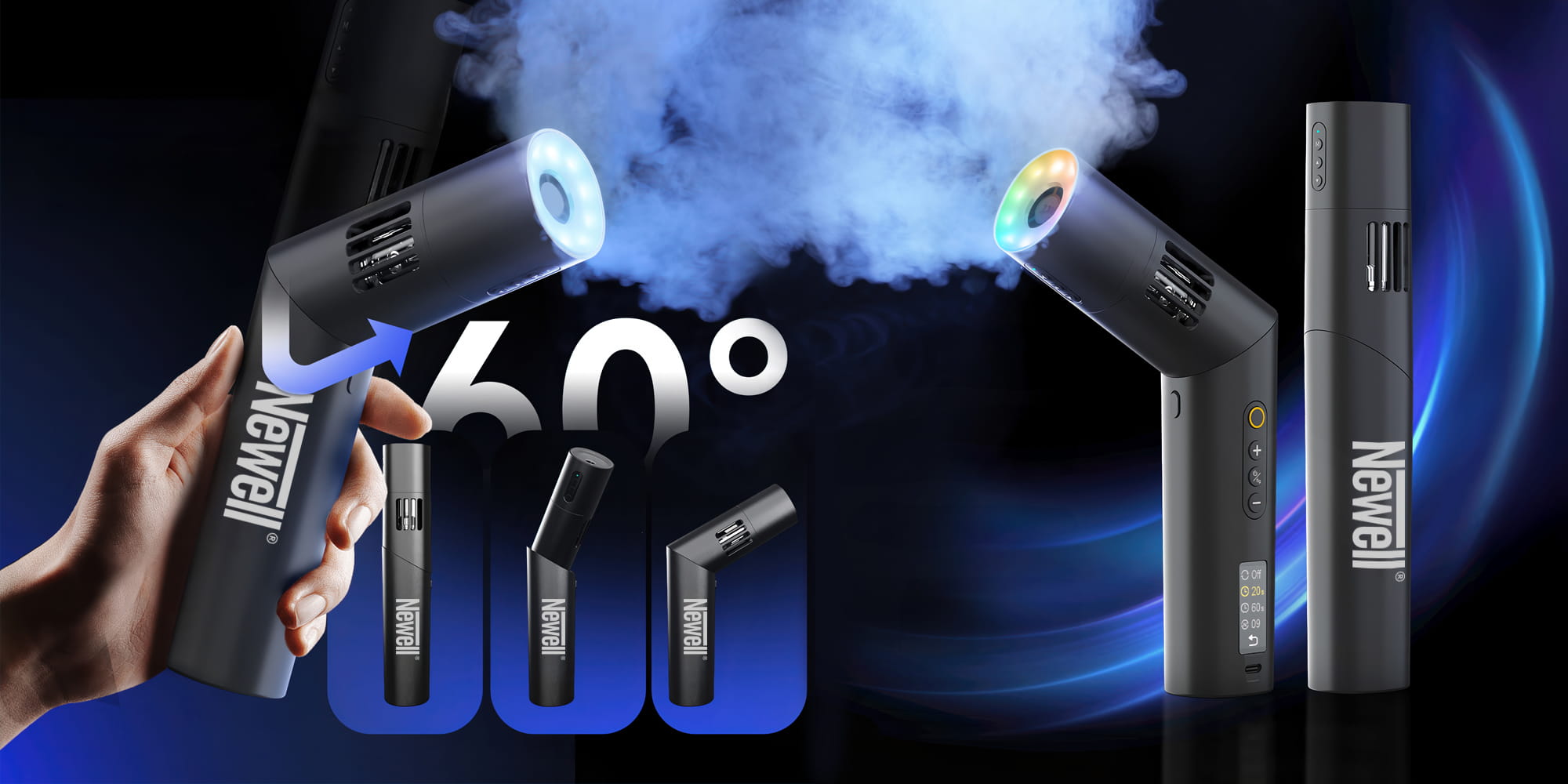 Newell Mr Mist to bezprzewodowy generator dymu zaprojektowany z myślą o twórcach video, fotografach i scenografach. Kompaktowa forma mieści w sobie ogrom możliwości – od subtelnej mgiełki, przez efekt suchego lodu, po gęsty dym jak z teatralnej sceny. Generator wyróżnia się dużą mocą sięgającą 40 W. Urządzenie oferuje niezależną regulację intensywność oraz gęstości aerozolu, zestaw wymiennych końcówek, ruchomą głowicę umożliwiającą zmianę kąta nachylenia, kolorowe podświetlenie RGB oraz pilot zdalnego sterowania. Akumulator zapewnia do 30 minut pracy. Tryb automatyczny umożliwia precyzyjne zaprogramowanie wyrzutów dymu. Mr Mist to także bezpieczeństwo, łatwość obsługi i pełna mobilność. W zestawie nie zabrakło butelki z liquidem pozwalającym rozpocząć pracę od razu po wyjęciu z pudełka.