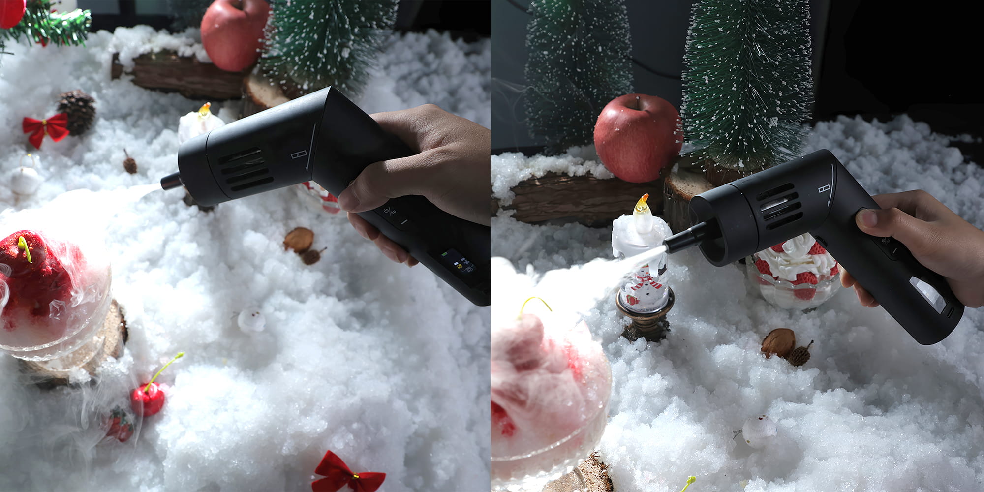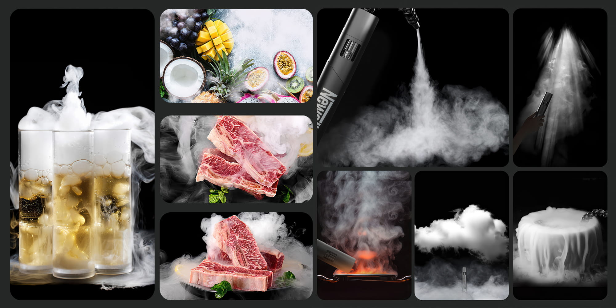 - fotografia kulinarna – idealny do pokazania parujących dań, efektu grillowania, imitacji suchego lodu lub „dymu z talerza”;