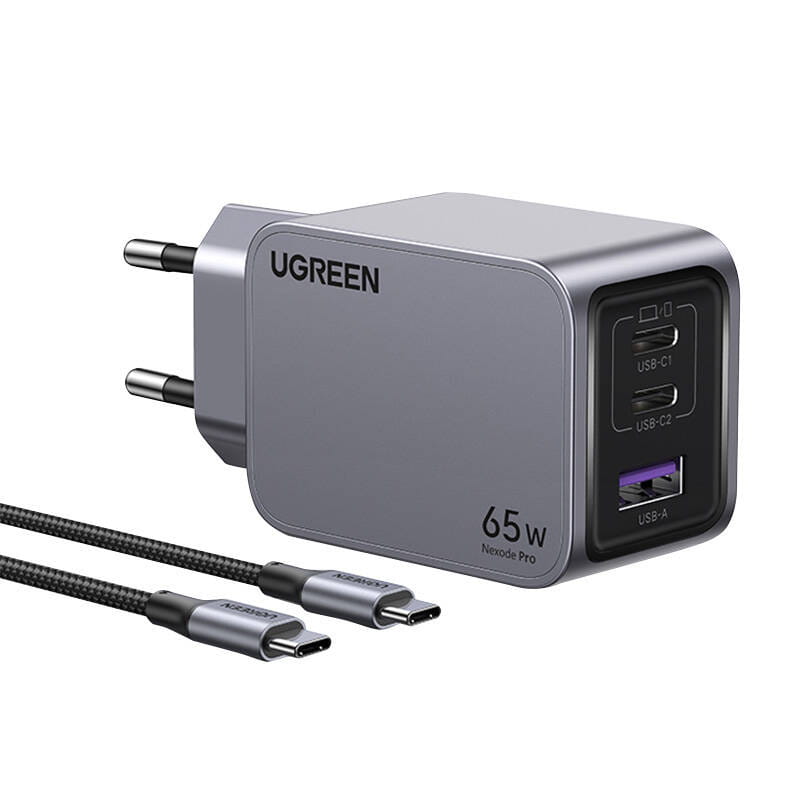 Ładowarka sieciowa Ugreen Nexode Pro, USB + 2x USB-C, 65W + kabel USB-C 1.5m (czarna)