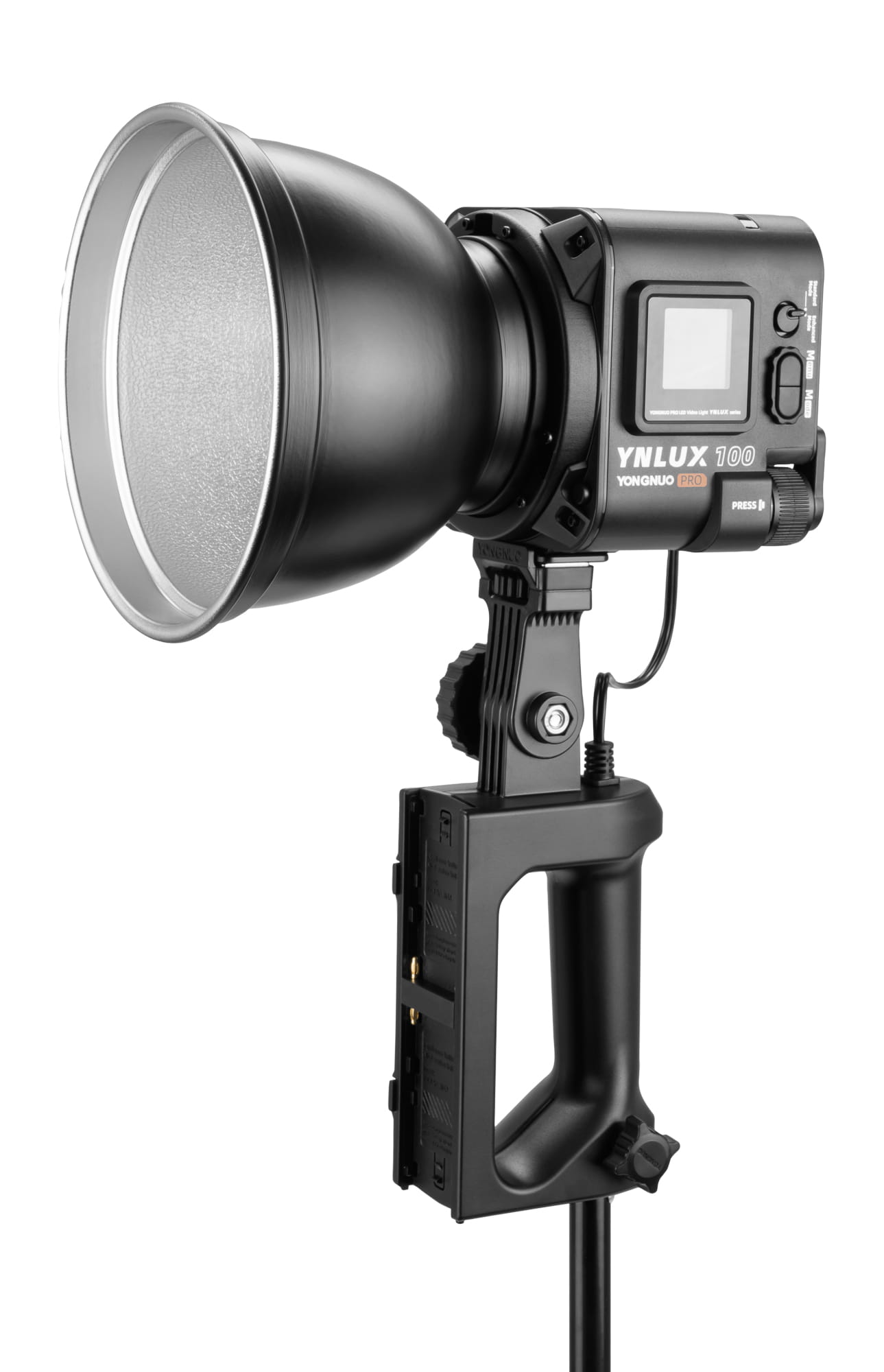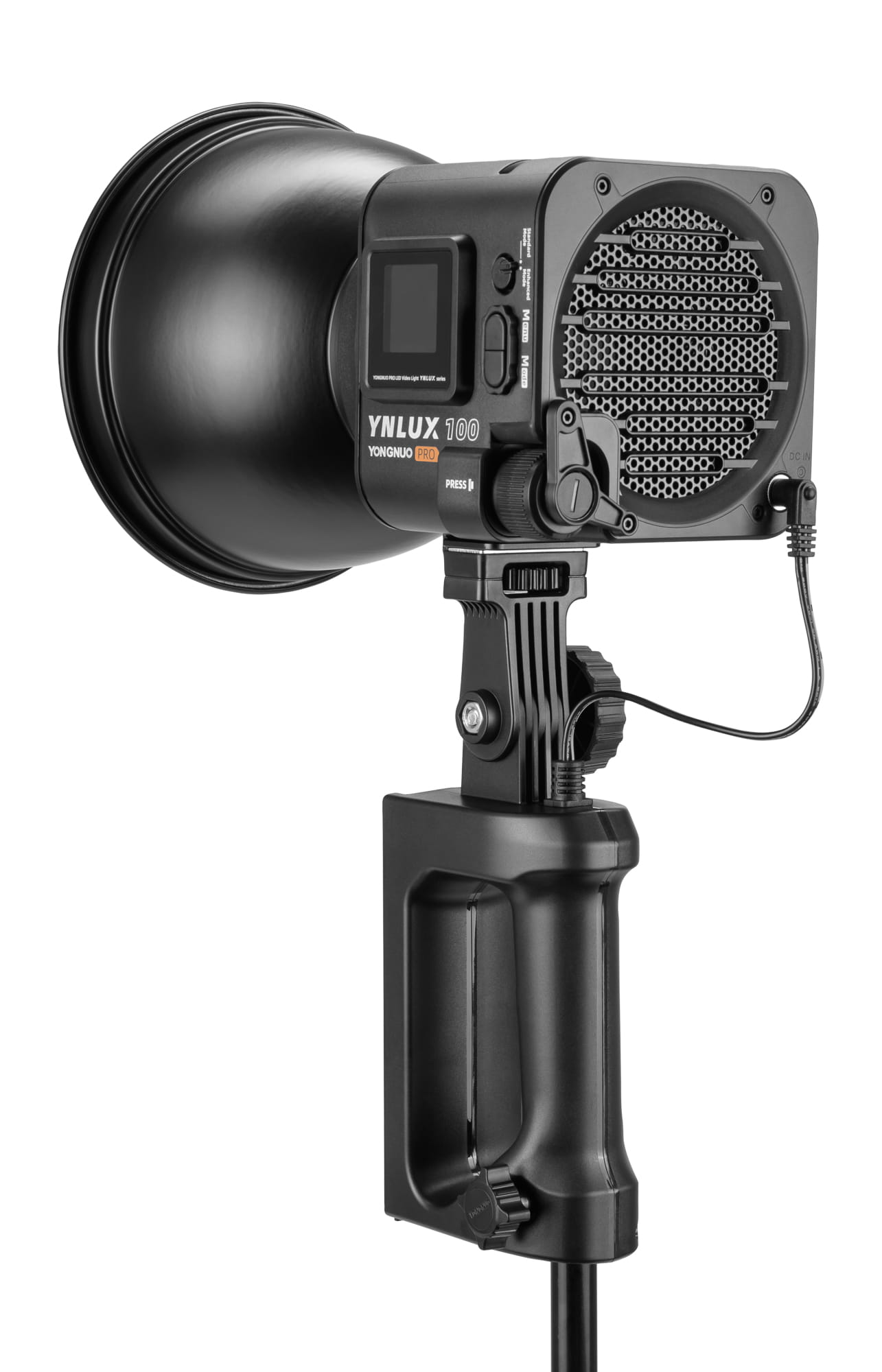 W zestawie z lampą Yongnuo LUX100 Pro znajdziesz ergonomiczny uchwyt, który pozwoli zainstalować urządzenie na statywie lub wygodnie trzymać je w dłoni. Akcesorium wyposażono w specjalny przegub ze śrubą zaciskową zapewniający regulację nachylenia. Ustawienie lampy pod odpowiednim kątem to kwestia kilku sekund!