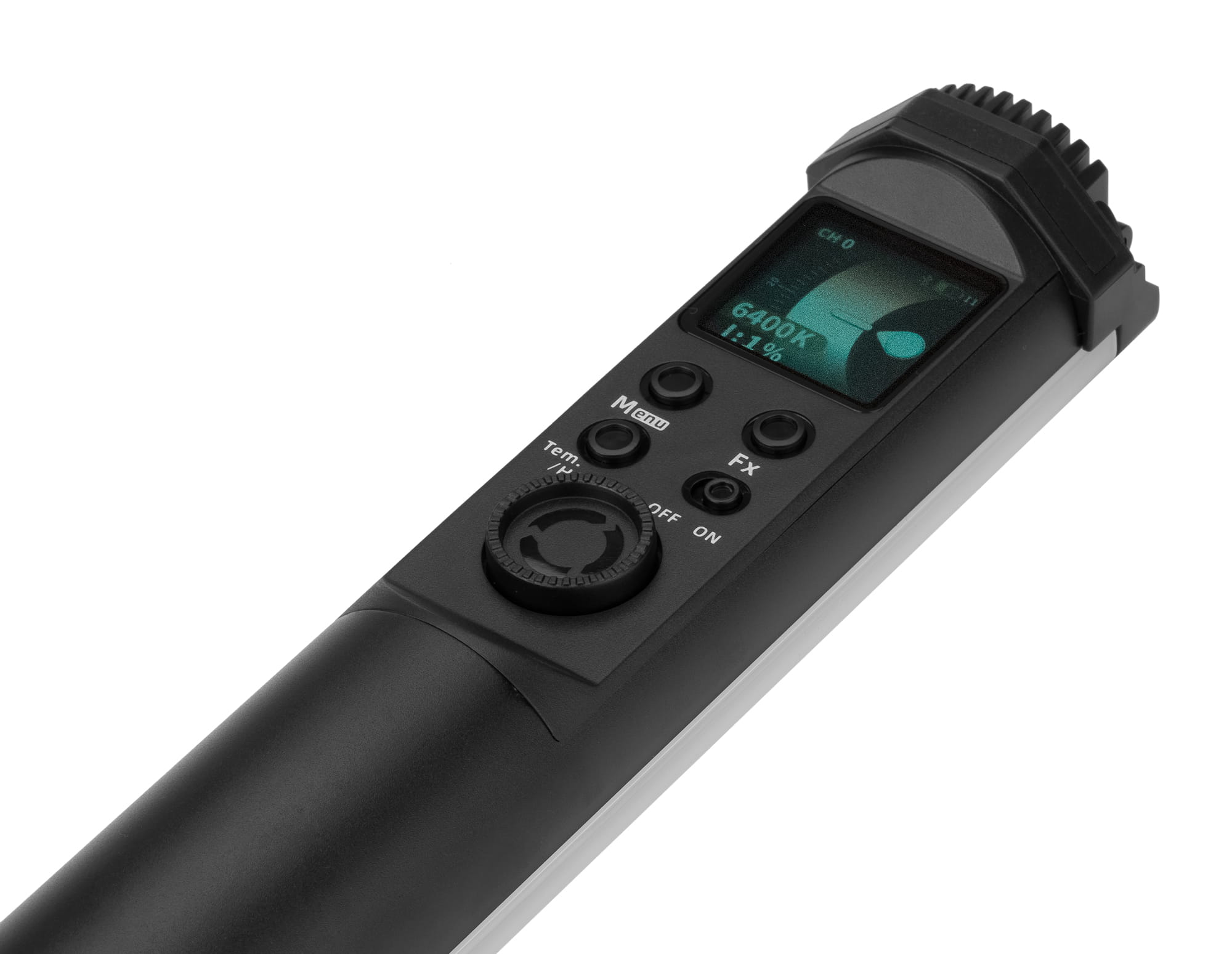 Mimo niewielkich rozmiarów Yongnuo YN360 Mini zaskakuje ogromną mocą i wszechstronnymi możliwościami. Lampę wyposażono w 180 ciepłych diod LED oraz 60 diod RGB SMD. Pozwala to na uzyskanie praktycznie dowolnego koloru światła, z zachowaniem bardzo wysokiego współczynnika CRI 96+. Dotyczy to zarówno barw ciepłych, jak i jasnych (także przy skrajnych wartościach). Charakterystyczny miecz w wersji Mini oferuje również tryb HSI, który umożliwia przytłumienie lub dodatkowe nasycenie wybranego koloru. Oprócz regulacji mocy i specyfiki światła możemy również precyzyjnie ustawić temperaturę barwową w przedziale od 2700 K do 7500 K. Dzięki zastosowaniu kolorowego ekranu LCD i ergonomicznego pokrętła zapanowanie nad ogromem funkcji lampy Yongnuo YN360 Mini jest dziecinnie proste!