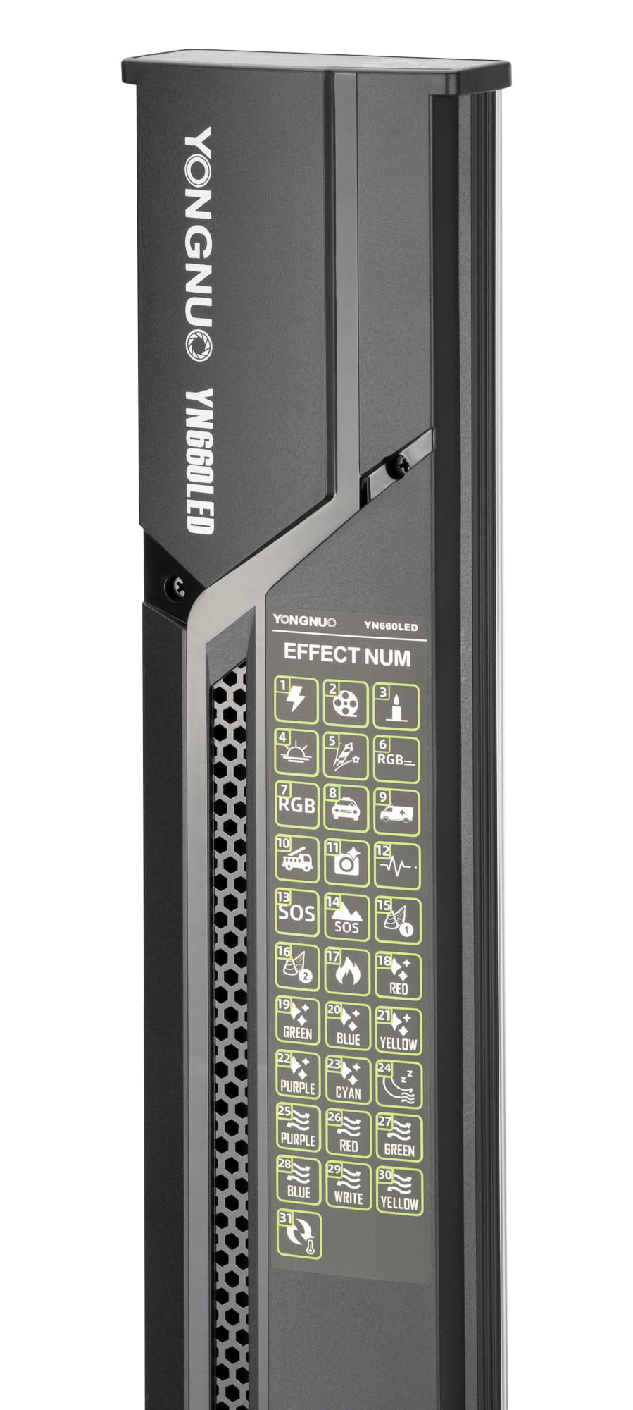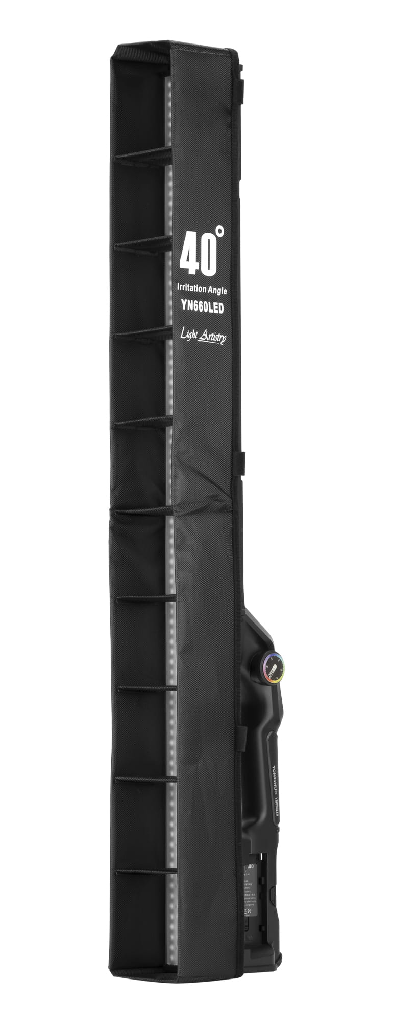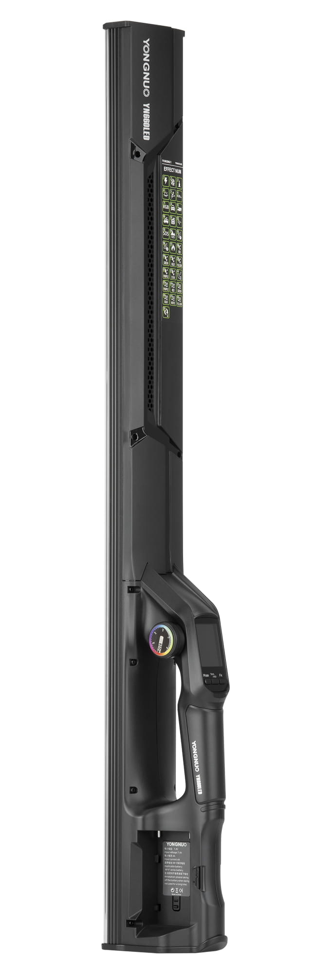 Marka Yongnuo stale powiększa rodzinę swoich lamp i podłużnych paneli LED o wszechstronnym zastosowaniu w filmie i fotografii. Model YN660LED na nowo definiuje ergonomię pracy z mieczem świetlnym. Urządzenie wyróżnia się charakterystycznym uchwytem, na którym umieszczono czytelny ekran LCD, przyciski funkcyjne oraz specjalne pokrętło zapewniające płynną regulację parametrów światła. Nowoczesną obudowę wykonano z aluminium i solidnego tworzywa. Producent zadbał również o właściwą wentylację i optymalne wywarzenie w przypadku instalacji akumulatorów. Wszystko to sprawia, że praca z lampą LED Yongnuo YN660LED jest wygodna zarówno po zainstalowaniu jej na statywie, jak i podczas oświetlania kadrów i ujęć "z ręki".