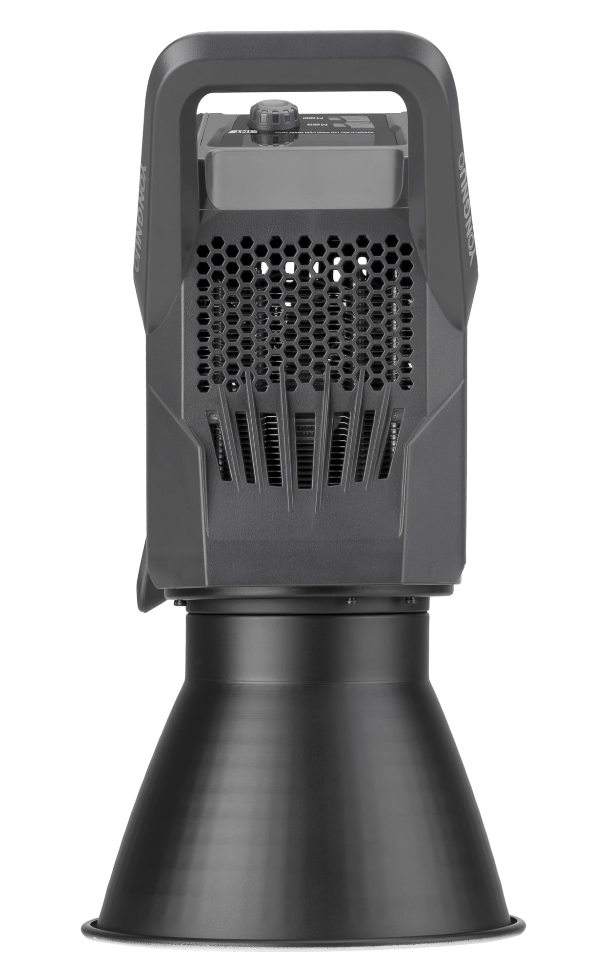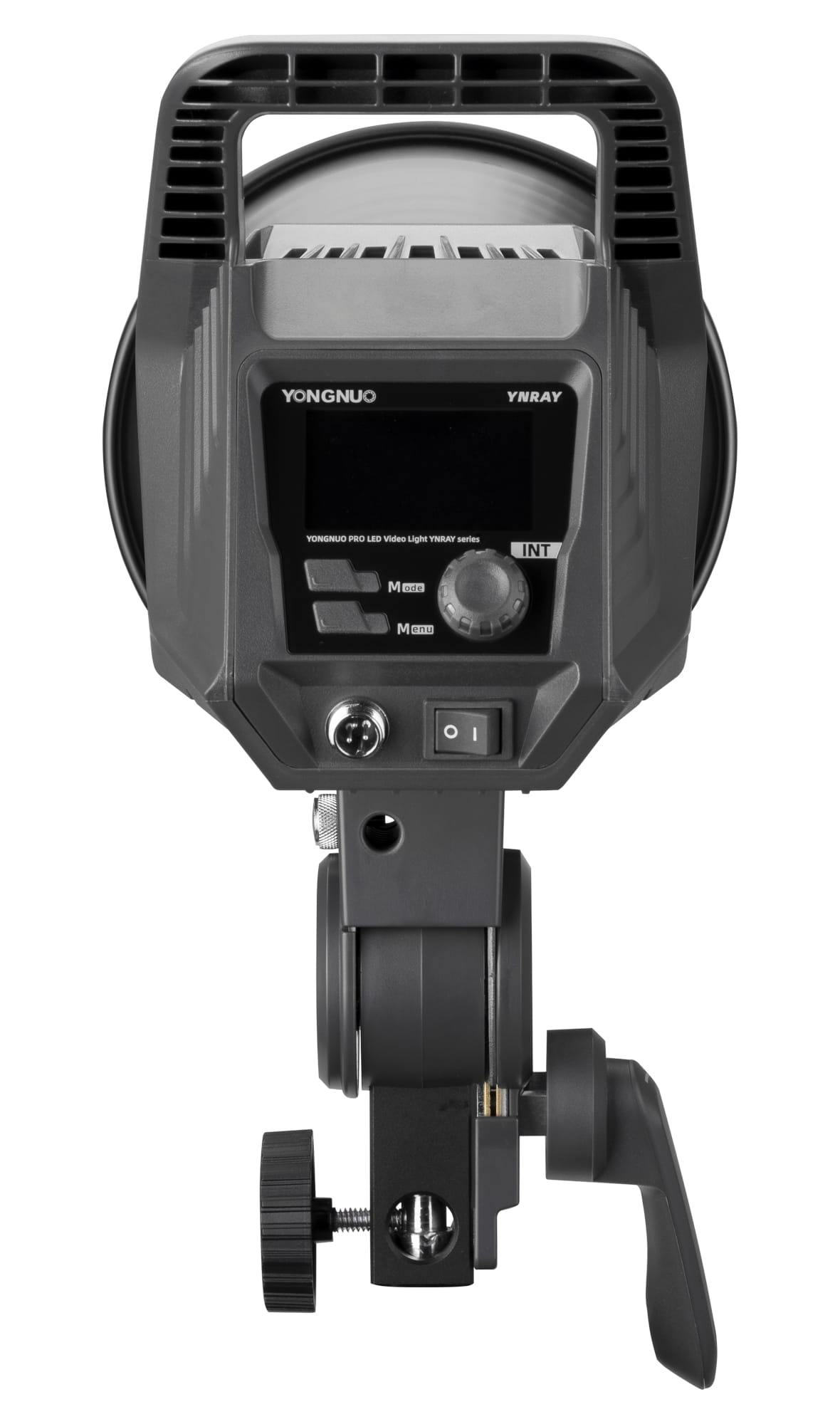 W tylnej części obudowy lampy LED Yongnuo YNRay100 znajdziesz szeroki uchwyt pozwalający w wygodny sposób regulować nachylenie urządzenia. Solidną blokadę optymalnej pozycji urządzenia zapewnia hamulec tarczowy z wygodnym w obsłudze zaciskiem. Na obudowie lampy nie zabrakło też ergonomicznego panelu sterowania z dużymi przyciskami, pokrętłem regulacyjnym oraz jasnym ekranem LCD, który zapewni wygodną obsługę w każdych warunkach oświetleniowych.