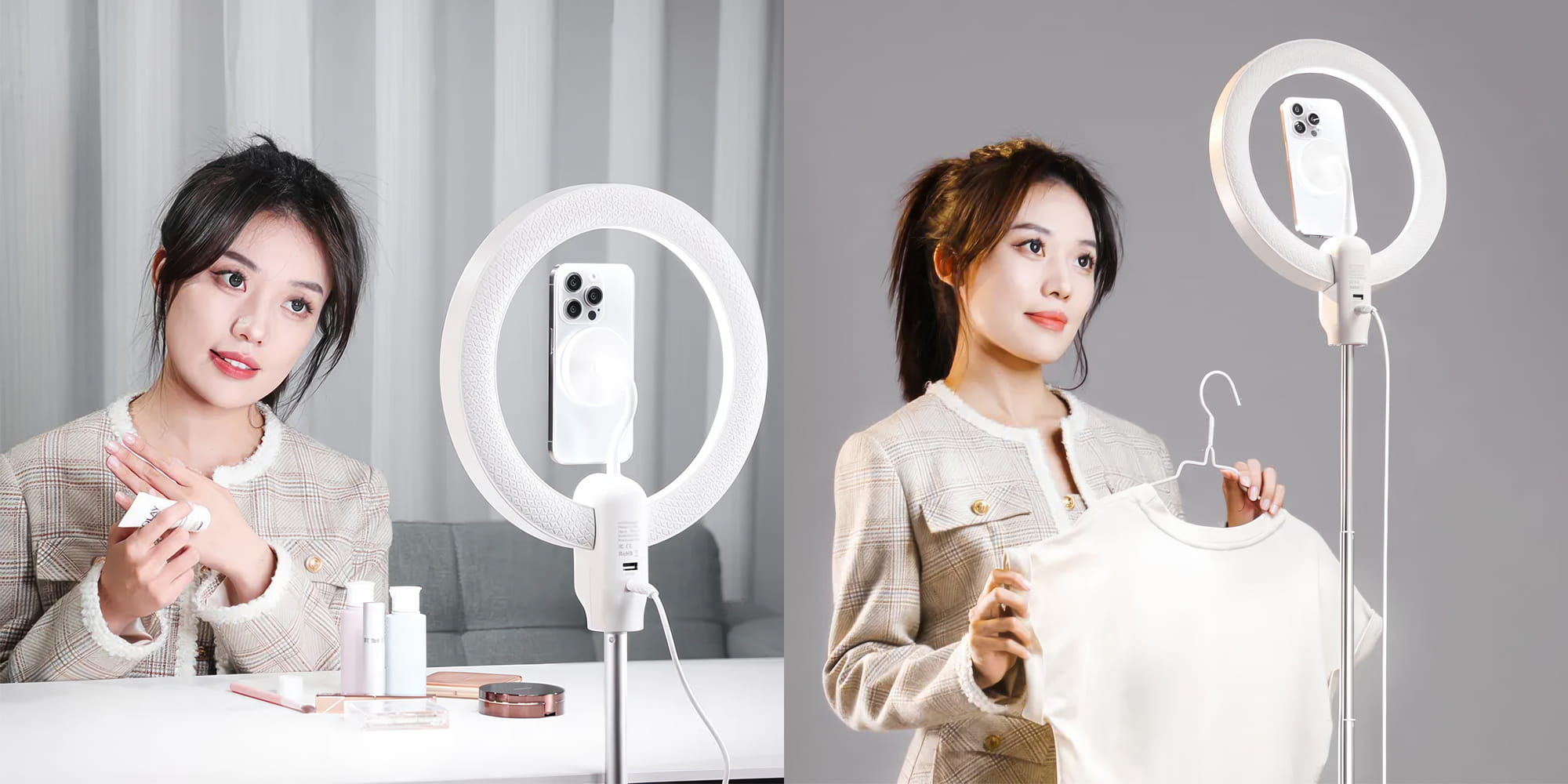 Jeden ruch i Twój telefon jest na miejscu – gotowy do nagrywania. Magnetyczny uchwyt, kompatybilny z iPhone'ami wyposażonymi w standard MagSafe oraz specjalnymi etui z pierścieniem magnetycznym, pozwala błyskawicznie przełączać się między trybem pionowym i poziomym, bez przerywania pracy. Wystarczy jeden obrót, by zmienić perspektywę i kontynuować tworzenie treści. To wygodne i szybkie rozwiązanie dla vlogerów, streamerów oraz wszystkich, którzy cenią sobie płynność pracy.