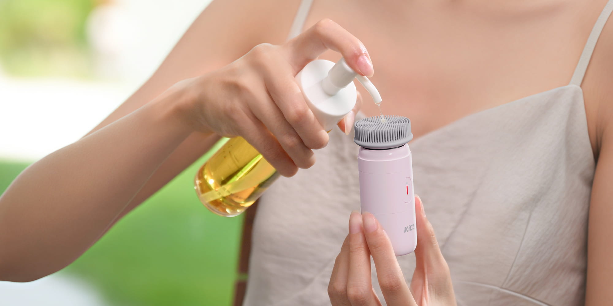KiCA PureClear to elektryczna szczoteczka soniczna do mycia i masowania twarzy. Urządzenie generuje do 3000 wibracji na minutę. Kompaktowy masażer łączy dwa rodzaje ruchu – masaż imitujący okrężne ruchy palców oraz peelingujące wibracje. Sczoteczka skutecznie usuwa zanieczyszczenia, nadmiar sebum i pozostałości makijażu z głębi porów. Dwie wymienne głowice z hipoalergicznego silikonu dopasowują się do różnych stref twarzy, w tym trudno dostępnych miejsc przy nosie i kącikach oczu. Wodoodporność IPX6 i bezprzewodowe ładowanie indukcyjne dopełniają obraz nowoczesnego urządzenia do pielęgnacji, które zmieści się w każdej kosmetyczce.