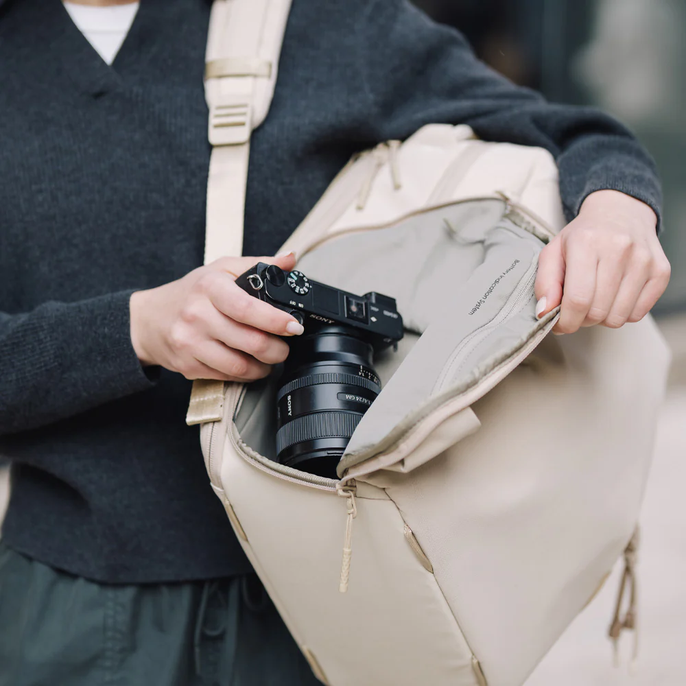 Plecak PGYTECH OneGo Lite 16L w kolorze kremowym to eleganckie i wszechstronne rozwiązanie, idealne dla fotografów, podróżników i każdego, kto ceni praktyczność, szybki dostęp do sprzętu i wygodę noszenia, niezależnie od warunków.