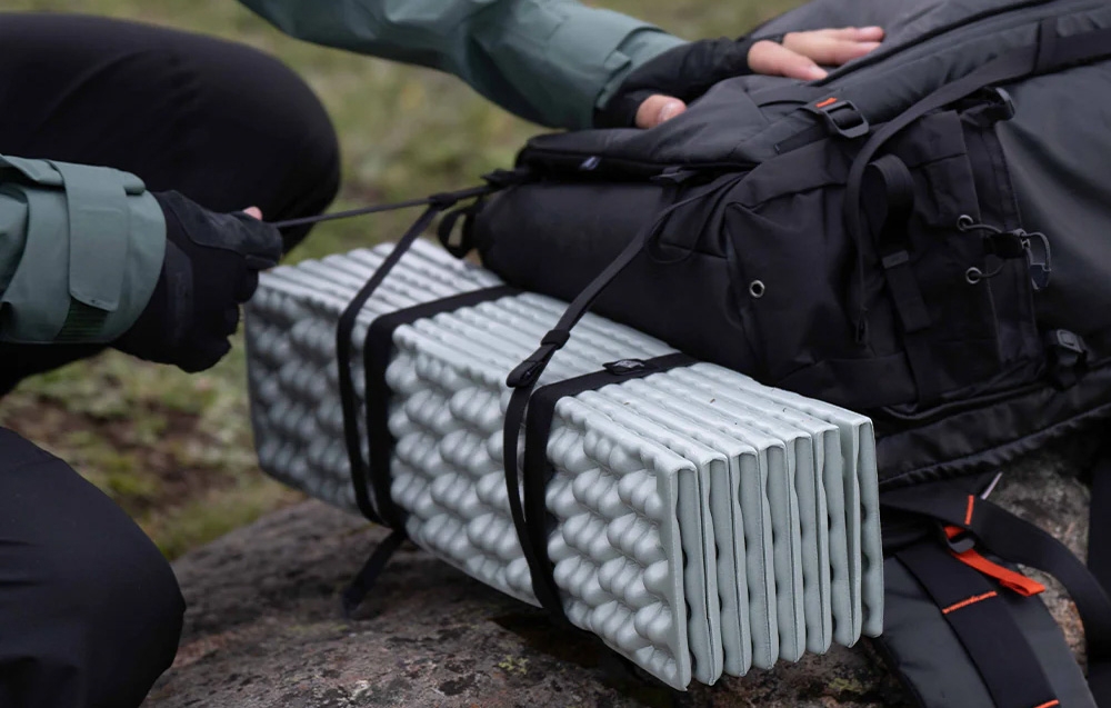 - Dodatkowe funkcje dla entuzjastów outdooru, takie jak mocowania na kijki trekkingowe, czekany i matę/drona.