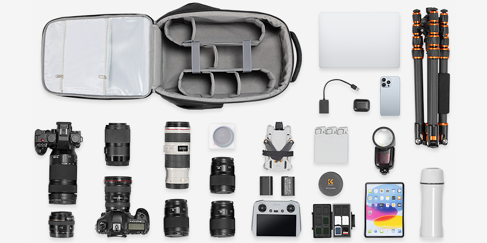 - z powodzeniem pomieści aparat, do 4 obiektywów, drona oraz laptopa o przekątnej do 15,6"
