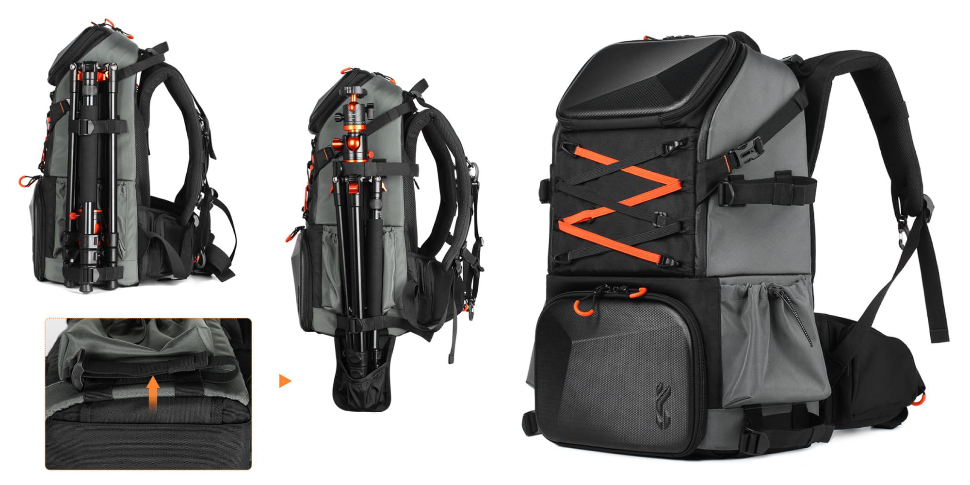- ukryty wspornik do statywu w dolnej części plecaka