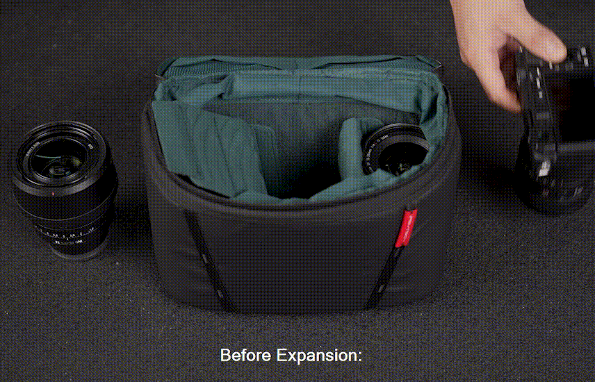 - Ulepszona przednia komora: Elastyczna konfiguracja pozwala na przechowywanie gimbala, statywu lub innych większych akcesoriów.