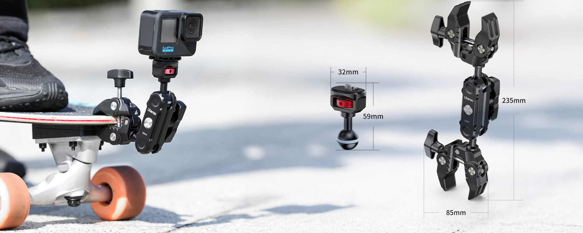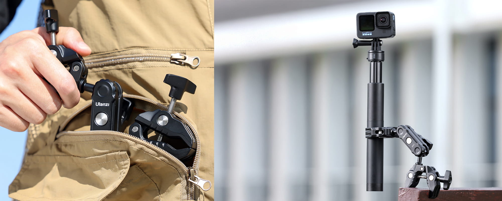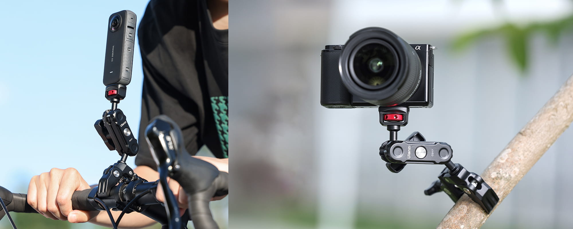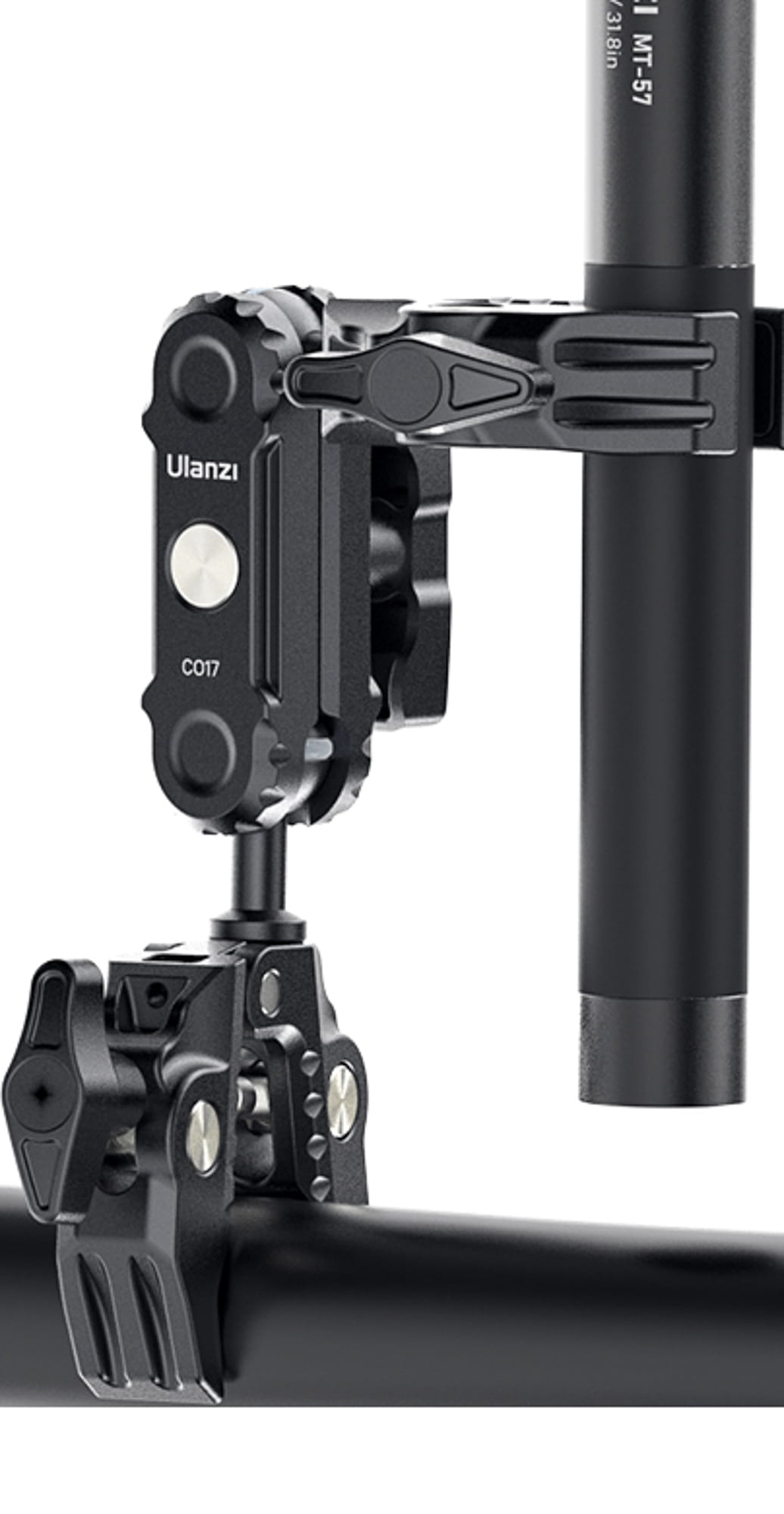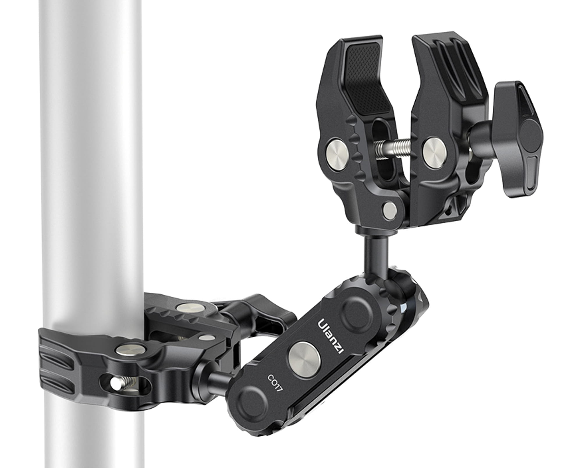Ulanzi C017 to uniwersalny uchwyt "magic arm" z systemem zaciskowym. Wyposażono go w 2 ramiona zamocowane na głowicach kulowych, które umożliwiają precyzyjną regulację pozycji. Ten uchwyt otworzy przed Tobą zupełnie nowe możliwości montażowe. Sprawdzi się zarówno podczas nagrań w studio, jak i w terenie. Przytwierdzisz go do kierownicy roweru, motocykla, blatu stołu, statywu czy rurki o grubości od 1,2 do 5,8 cm. To niezawodne rozwiązanie dla twórców, którzy nie znają słowa "ograniczenia"!