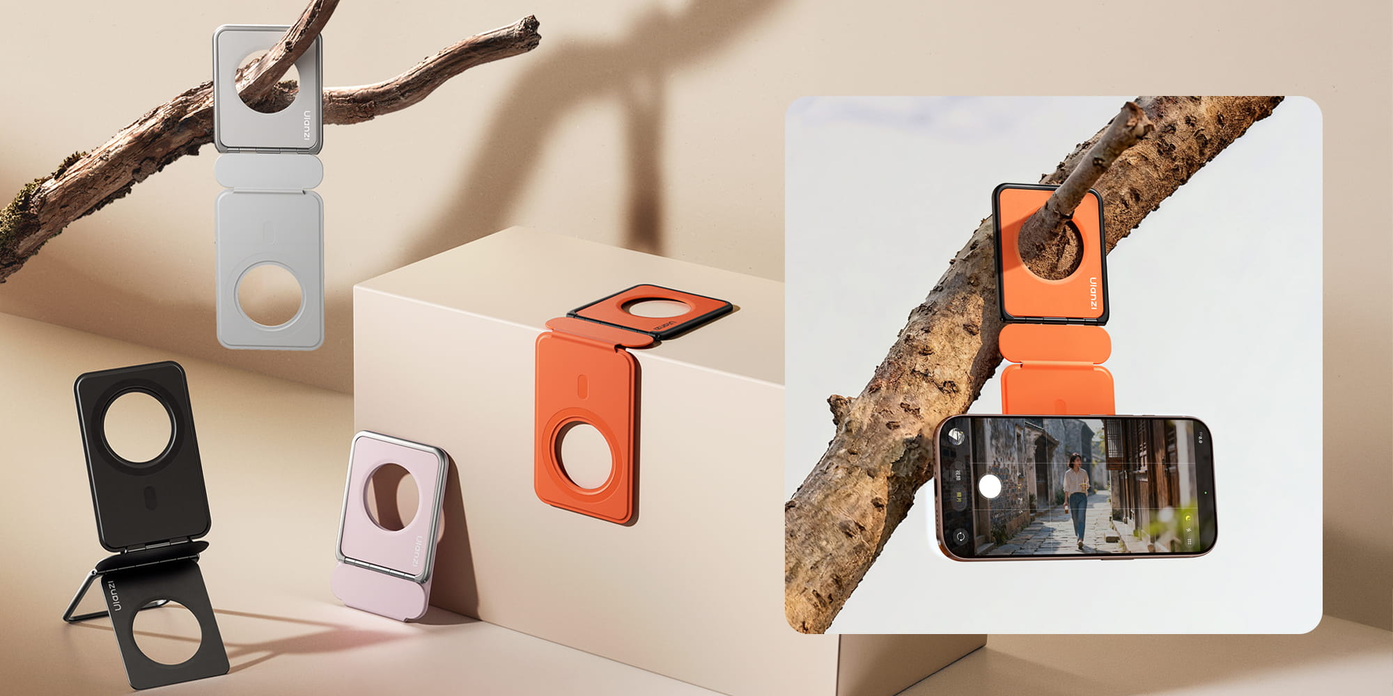 Tryb uchwytu i statywu to nie wszystko, co oferuje model Ulanzi PS01. Dzięki otworowi montażowemu możesz zawiesić telefon na gałęzi podczas zdjęć w plenerze, przyczepić do uchwytu w samolocie i oglądać filmy podczas lotu lub przymocować do haczyka w kuchni, by śledzić przepisy bez zajmowania miejsca na blacie. Możesz też użyć statywu jako uchwytu ręcznego.